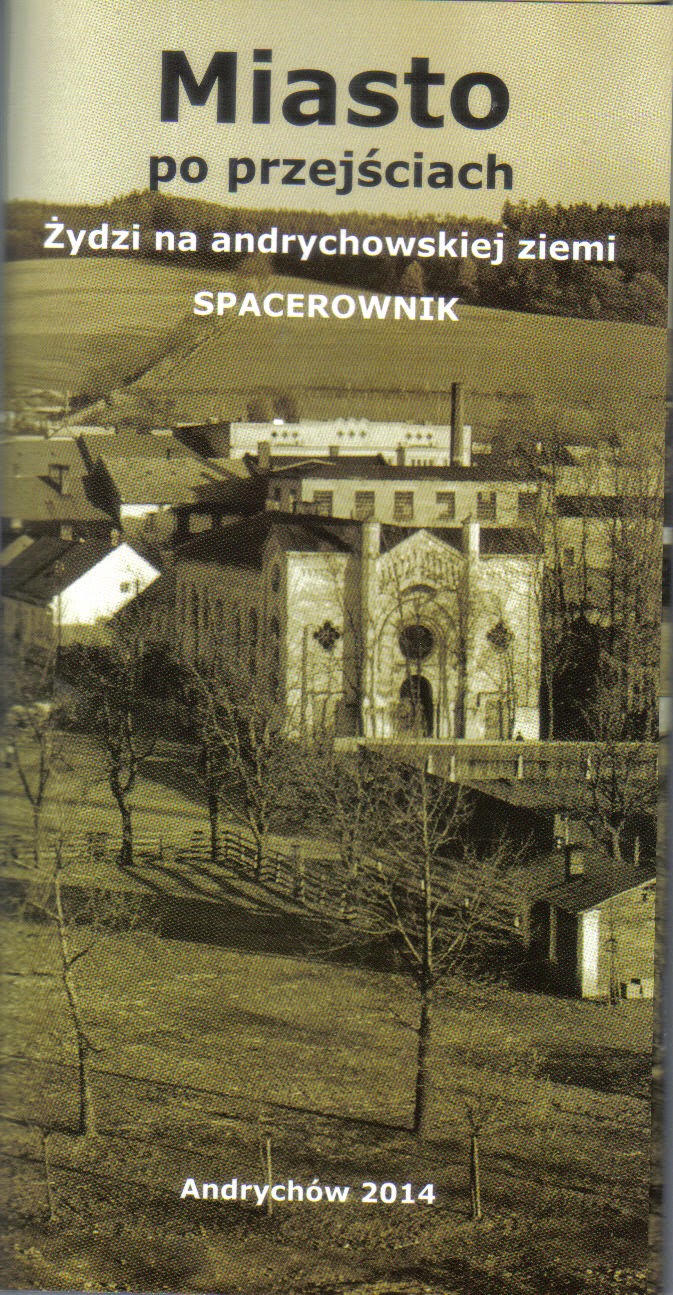 Do rąk uczestników wernisażu wystawy „Miasto po przejściach – Żydzi na andrychowskiej ziemi”, trafił folder wydany w formie spacerownika w nakładzie zaledwie 500 egz.  Jest to doskonałe kompendium wiedzy na temat andrychowskich Żydów, wskazuje miejsca, z którymi społeczność ta był związana, odkrywa na nowo etniczny  rozdział w historii miasta.   Publikacja w kredowej obwolucie zawiera na zewnętrznej stronie panoramę fotograficzną widoku miasta z okresu międzywojennego z centrum w kierunku Pańskiej Góry, w której jest nie tylko uwidoczniona wieża kościoła Św. Macieja, ale także spalona w 1939 roku przez hitlerowców wspomniana synagoga, wewnątrz zaś okładki wydrukowana została plansza trasy spacerowej – śladami zabytków domów należących niegdyś w centrum miasta do Żydów oraz tekst modlitwy szabatowej. Folder opisuje na przeszło 40 stronach historię Żydów w Andrychowie, zawiera sporo historycznych zdjęć postaci i miejsc związanych z historią Żydów.