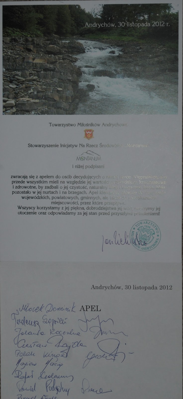 Towarzystwo Miłośników Andrychowa otrzymało dotację z Wojewódzkiego Funduszu Ochrony Środowiska i Gospodarki Wodnej na realizację projektu pt. 3xWieprzówka, czyli przypadek lokalnej rzeki, obejmującego przygotowanie wystawy o rzece Wieprzówka w formie modelu z bogatą ilustracją fotograficzną, eksponatową i audiowizualną.