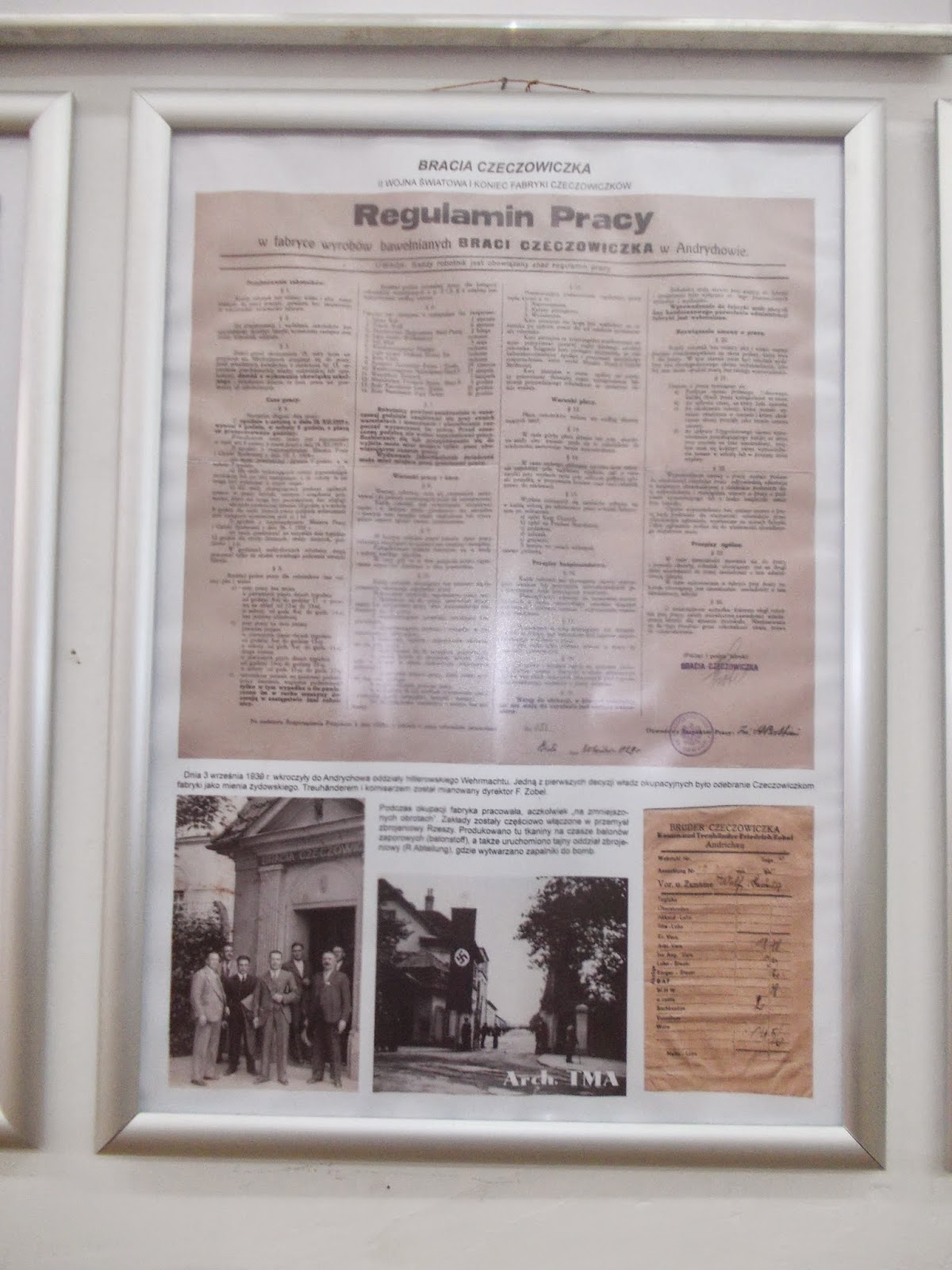 Na wystawie zgromadzono stare zdjęcia, narzędzia, wycinki z prasy i dokumenty. Swój kącik ma Fabryka Braci Czeczowiczka, utworzona przez rodzinę żydowską, po wojnie firmę przekształcono w Andrychowskie Zakłady Przemysłu Bawełnianego „Andropol”.