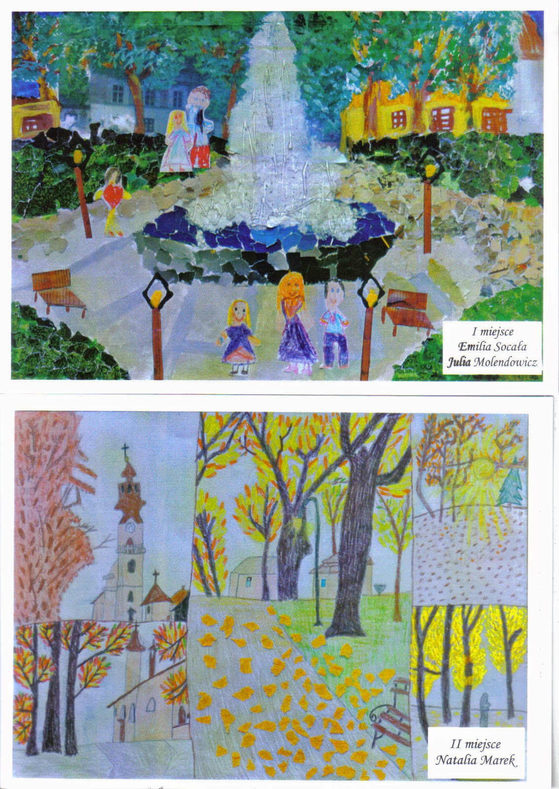 1. Emilia Socała i Julia Molendowicz (kl. I) „Fontanna na plantach w Andrychowie” ZSS w Sułkowicach-Bolęcinie