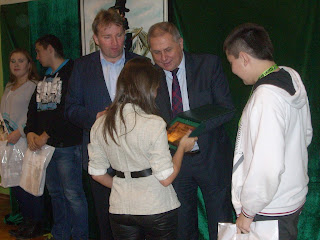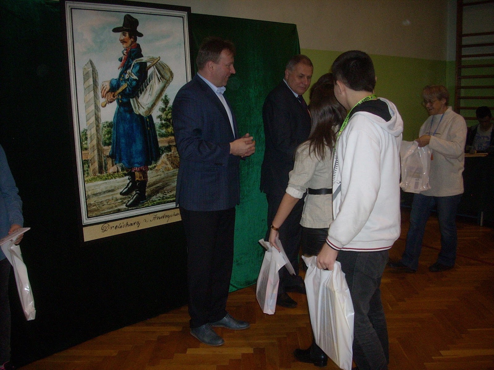 Nagrody zwycięzcom wręczyli: Burmistrz Andrychowa Tomasz Żak, Dyrektor ZS nr 1 Tomasz Bizoń i prezes TMA Jan Zieliński.
